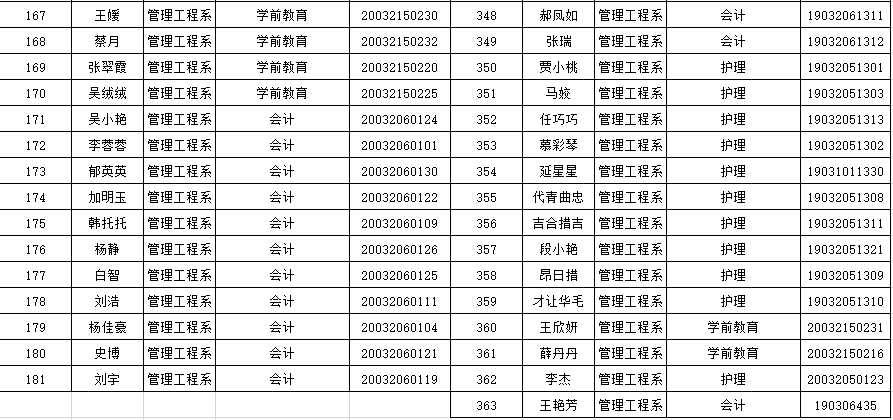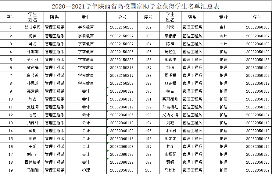 管理工程系神木学院学籍国家助学金评选公示