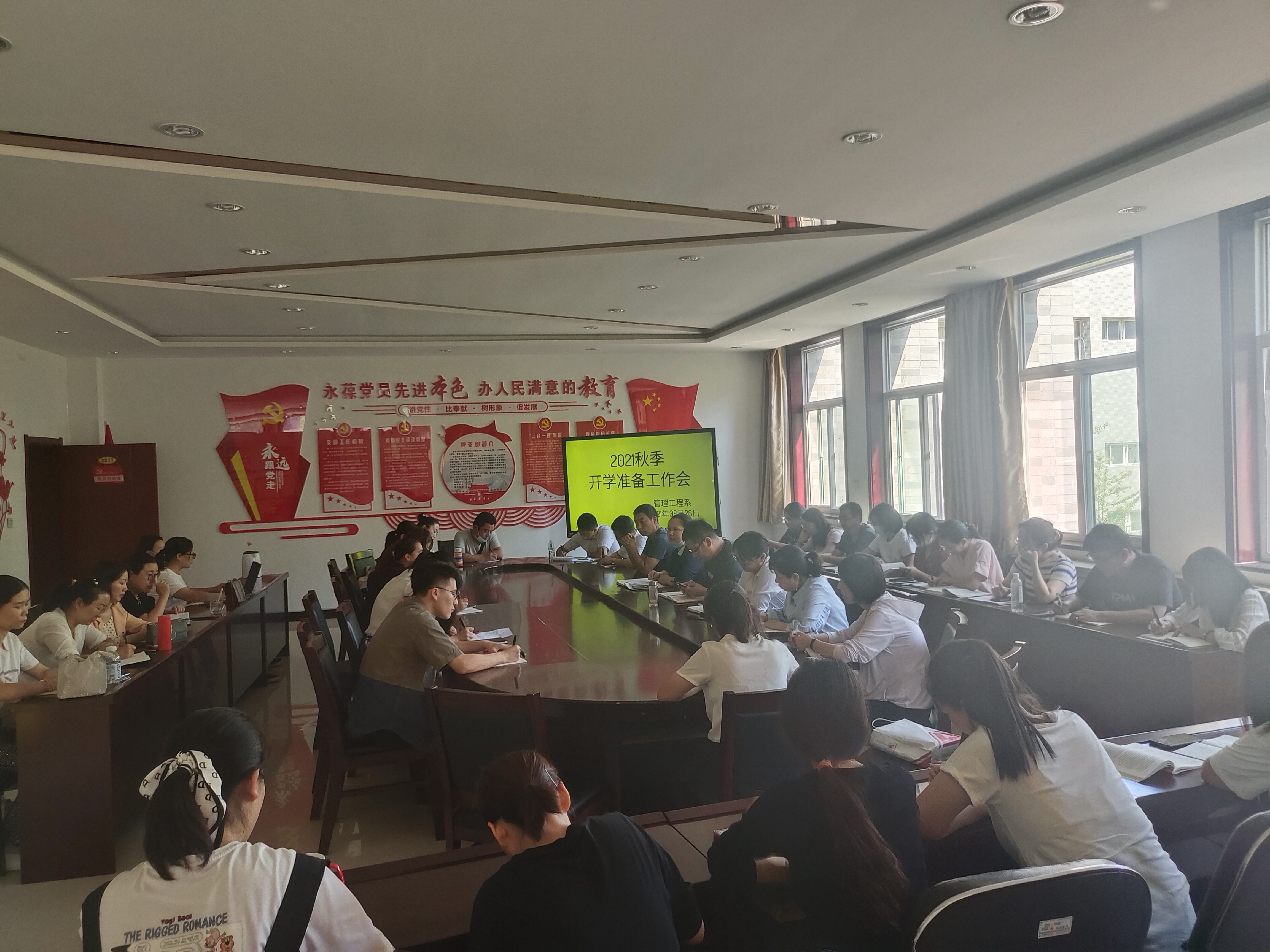 08月28日下午,管理工程系在系部会议室召开开学准备工作会暨干部作风整顿动员会。会议由高彩琴主任主持,系部全体教师参加了会议。