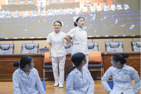 6月10日,教务处联合管理工程系特邀我校护理专业校企合作医院-榆林市五院护理部主任高敏一行6人对全体19级护理实习生进行了为期一天的护理礼仪岗前培训。
