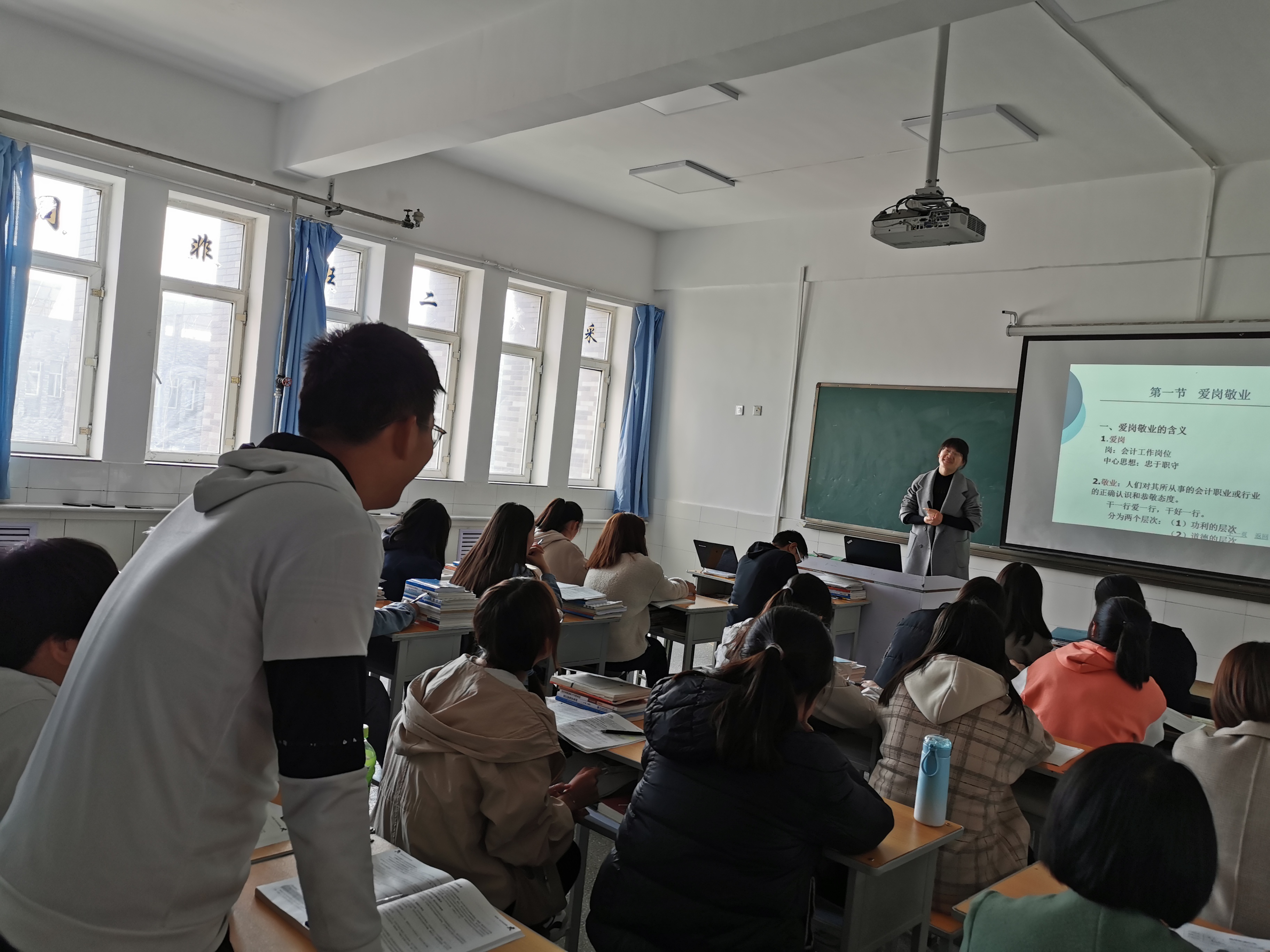 11月4日,贺宁老师在19会计班讲授了主题为《爱岗敬业》的课程,在执教的过程中她以饱满的热情去带动学生、启发学生树立正确的价值观,引导学生在愉快、宽松的氛围中学习。课上学生认真听讲,积极地发表自己的看法。贺宁老师展现了自己的教学风采,学生们在老师的引导下,积极主动地参与活动。