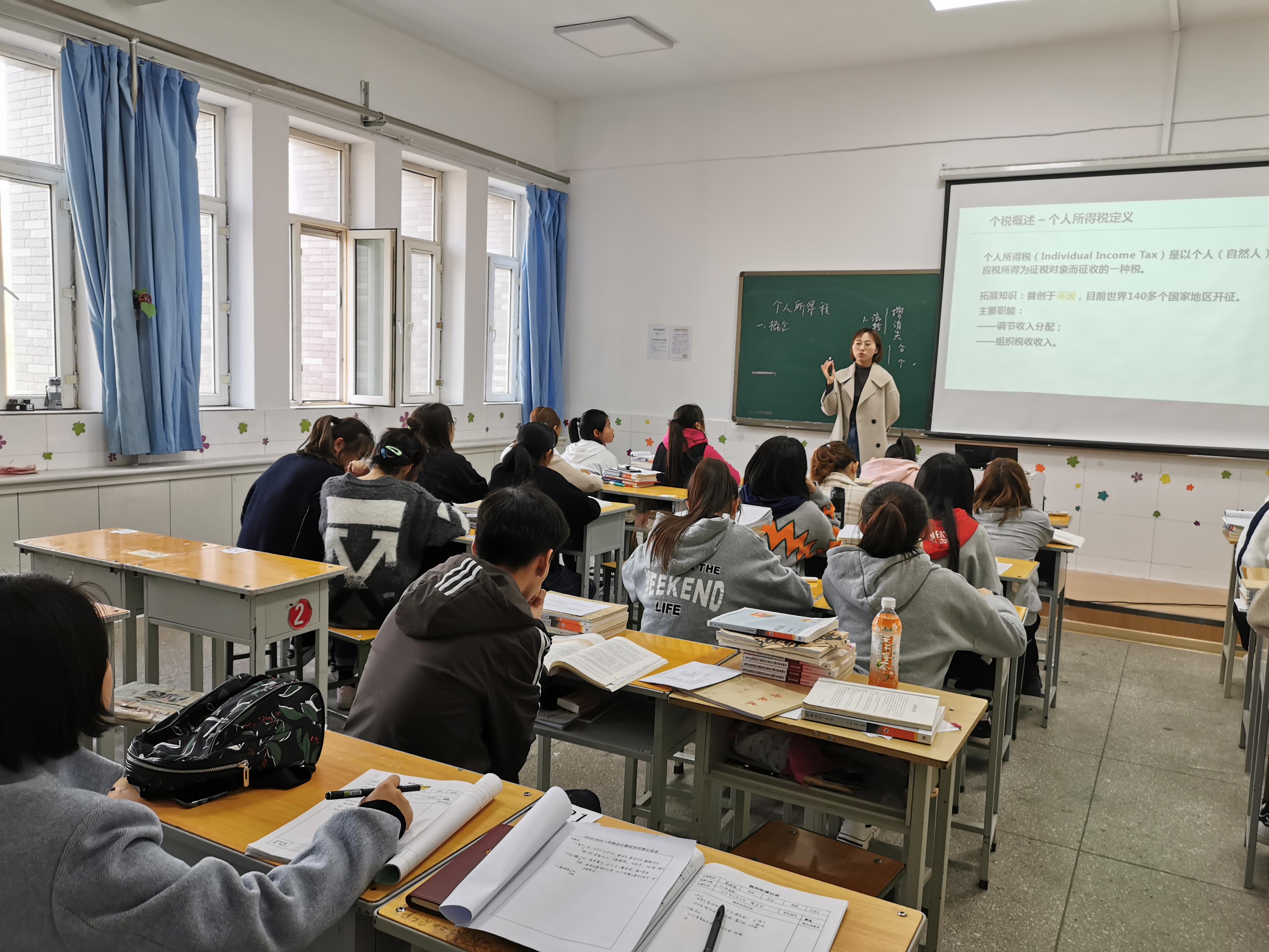 11月5日,薛娜妮老师在18会计班讲授了主题为《个人所得税》的课程,课堂上薛老师通过对比中西方国家不同的税收政策、我国不同时期的个人所得税税收政策,激发学生的学习兴趣,她利用精美的ppt让学生了解我国个人所得税的发展历程及个人所得税的内容,条例清楚、教态自然大方,学生学习的积极性很高。