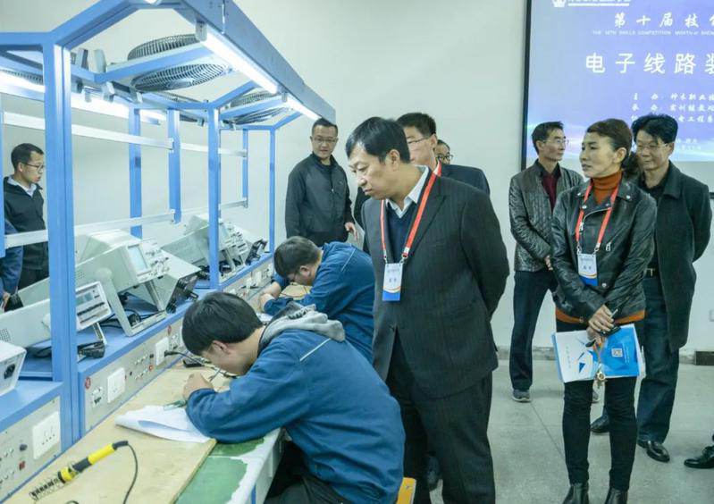 开幕式后,领导们来到工程测量、钳工、采掘电气维修、化工精馏操作技术竞赛现场进行观摩指导。