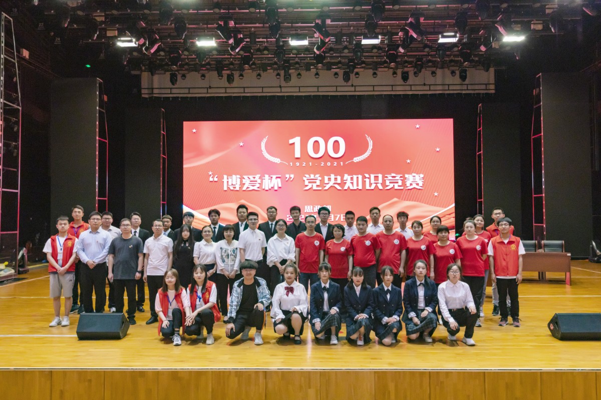 为庆祝建党100周年,高质量推进党史学习教育,6月7日晚,由学院思政部、管理工程系党支部联合主办,教务处、学生处、团委协办的2020-2021-2学期思政实践课暨第一届“博爱杯”党史知识竞赛决赛在师生活动中心举行。博爱恒业医药集团党支部副书记单珩先生、副总经理郭玉梅女士和学院各系部及相关处室负责人出席,大一学生和部分师生党员代表参加本次活动。活动由思政部张彬蔚老师和20级数媒班白晓天同学主持。