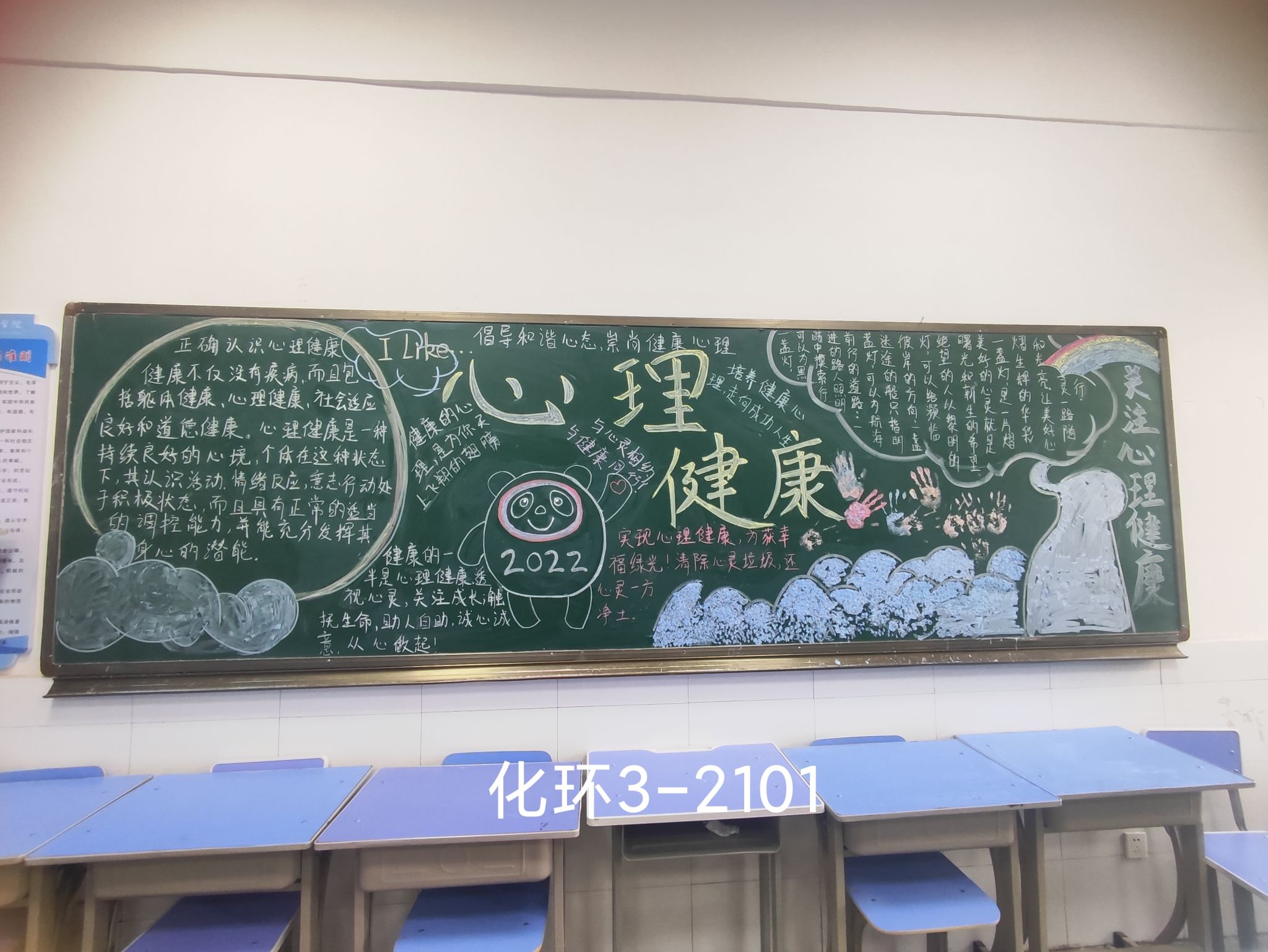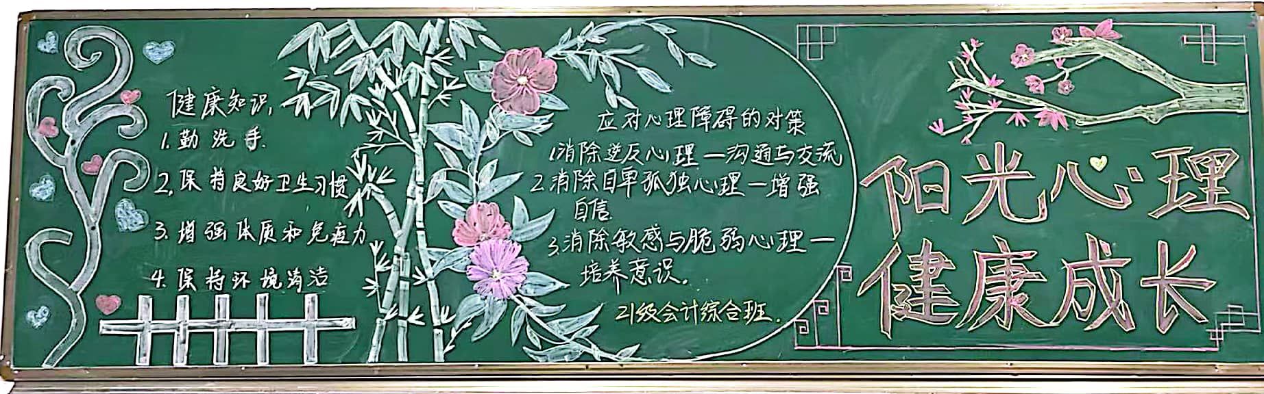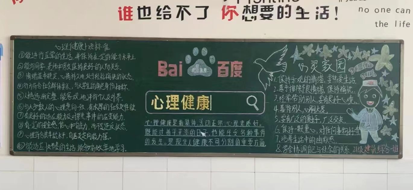 我院于2022年4月期间举办“第一届心理黑板报设计大赛”,参与对象为全校20级、21级在校学生。