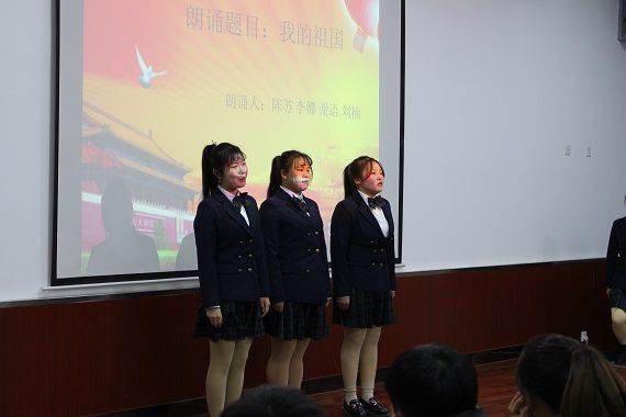 比赛中,选手们的朗诵铿锵有力,慷慨激昂,管理工程系的四位女同学用满腔的热血为比赛开了一个好头,给我们朗诵了一首《我的祖国》,她们的声音时而低沉,时而高亢,动作整齐而富有力度,抒发了对祖国的热爱,把同学们带回到那段难忘的历史,展现出了当代大学生良好的精神风貌。就这样,选手们一组接着一组饱含激情地朗诵着,以最好的姿态展现在我们面前。