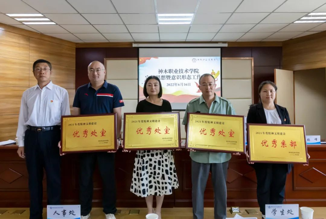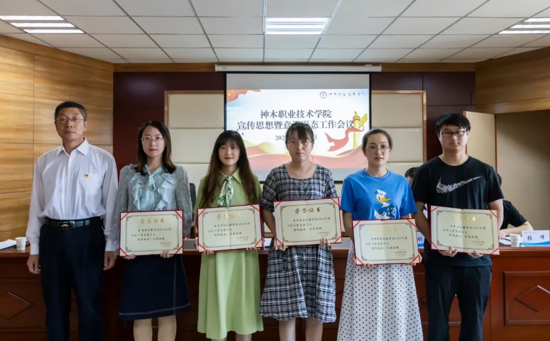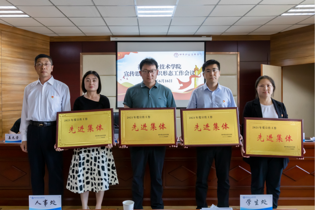 会议还表彰了2021年学院宣传工作和精神文明创建工作中的先进工作者和先进集体,表彰了实训-继教处等4个2021年宣传工作先进集体,王慧等13名宣传先进个人;团委等3个2021年度精神文明建设优秀处室,管理工程系等1个优秀系部,朱翠等14名先进个人和高建国等7名陕西高校新闻奖获得者。