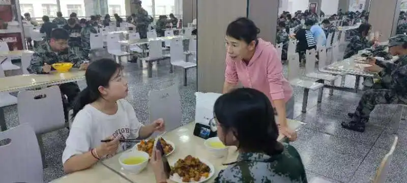 最后,领导们走进餐厅,与学生们进行面对面的交流。在交流中,郭亚芳不仅关心学生们的饮食习惯,还询问他们在军训期间的感受和遇到的困难。学生们纷纷表达了对军训的期待与挑战,同时也提出了一些合理化建议。