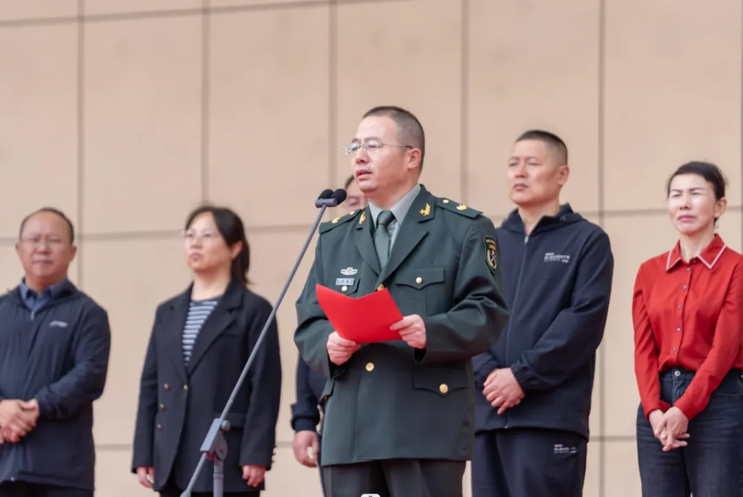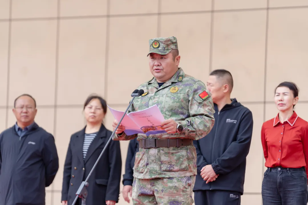 随后,军训团团长宋平同志宣布军训计划及军训作息时间。他表示,军训将帮助大家适应集体生活,增强心理素质,并在艰苦的训练中锤炼出勇敢与坚韧的品质。他鼓励同学们在军训中要保持积极向上的态度,克服困难,互帮互助,共同进步。