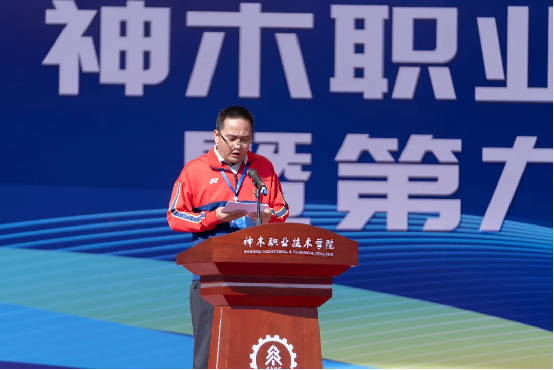 李建法致运动会开幕词。他向运动员、裁判员及筹备人员表示衷心感谢,并指出运动会既是体育竞技的舞台,更是师生展现青春风采、践行体育精神的重要契机,有助于彰显神木职院人昂扬向上的精神风貌。他强调,体育是力量与智慧的双重较量,不仅能强健体魄,更是培育爱国主义、集体主义精神的重要途径,勉励作为大国工匠后备力量的当代大学生锤炼健康体魄与坚韧意志,成长为全面发展的新时代青年。他号召运动员团结协作、组委会精心组织、工作人员热情服务,共呈精彩赛事,并呼吁全体师生将拼搏奋斗精神融入学习生活,为个人成长与学校 “双高” 建设贡献力量。