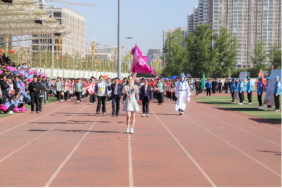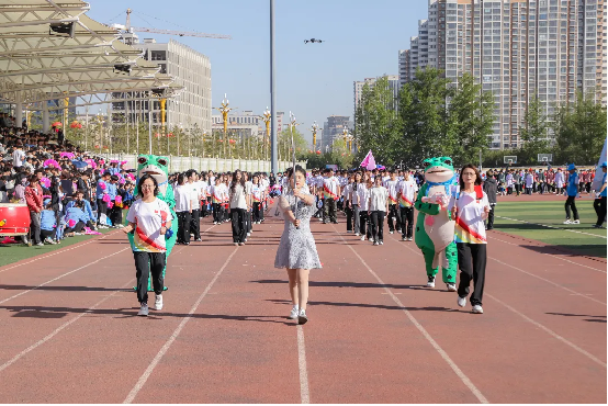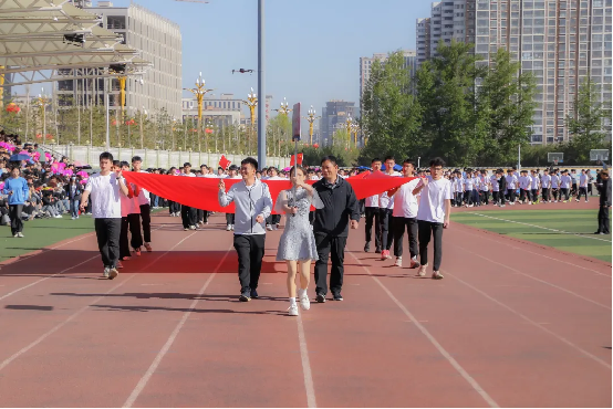 在激昂的音乐声中,国旗护卫队、校旗队、彩旗队、裁判员和运动员依次入场,他们步伐整齐、精神抖擞,彰显着庄严与力量。随后,各班级组成的运动员方阵迈着矫健的步伐,喊着响亮的口号依次入场。每个方阵都独具匠心,有的身着特色服装,有的手持创意道具,通过精彩的表演展现出班级的独特风采与青春活力,赢得了现场观众的阵阵掌声与欢呼声。