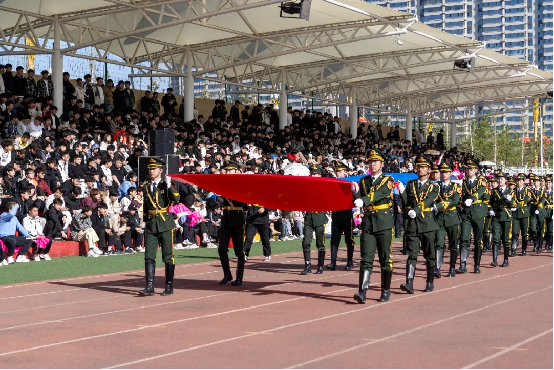 入场仪式结束后,庄严的升旗仪式开始。全体师生肃立,注视着五星红旗冉冉升起,在国歌声中表达对祖国的无限热爱与崇高敬意。