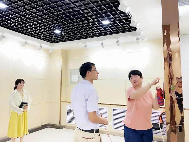 高艳参观了图书馆二楼的传统文化展区,重点了解了关于非遗的传承现状和未来规划,并提出了宝贵的意见。参观结束后,高艳与图文信息处主任殷长庆就剪纸文化、后期合作及非遗传承等方面进行了交流讨论。