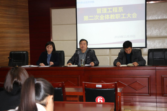 管理工程系于11月20日在1号行政楼509会议室召开了本学期第二次全体教职工大会。此次大会由高彩琴副主任主持,周恩善主任、刘树平副主任以及管理工程系全体教师参加了此次大会。