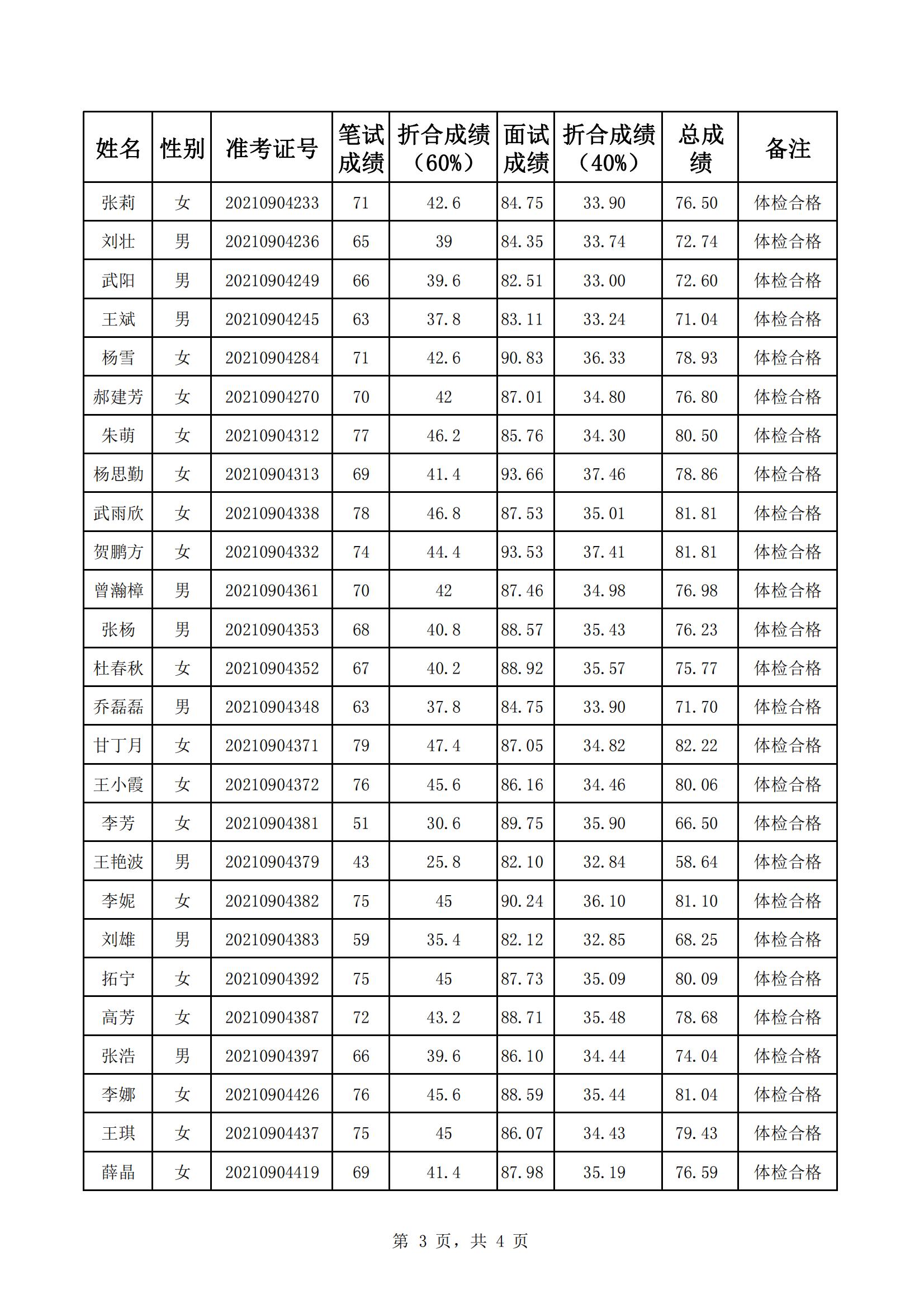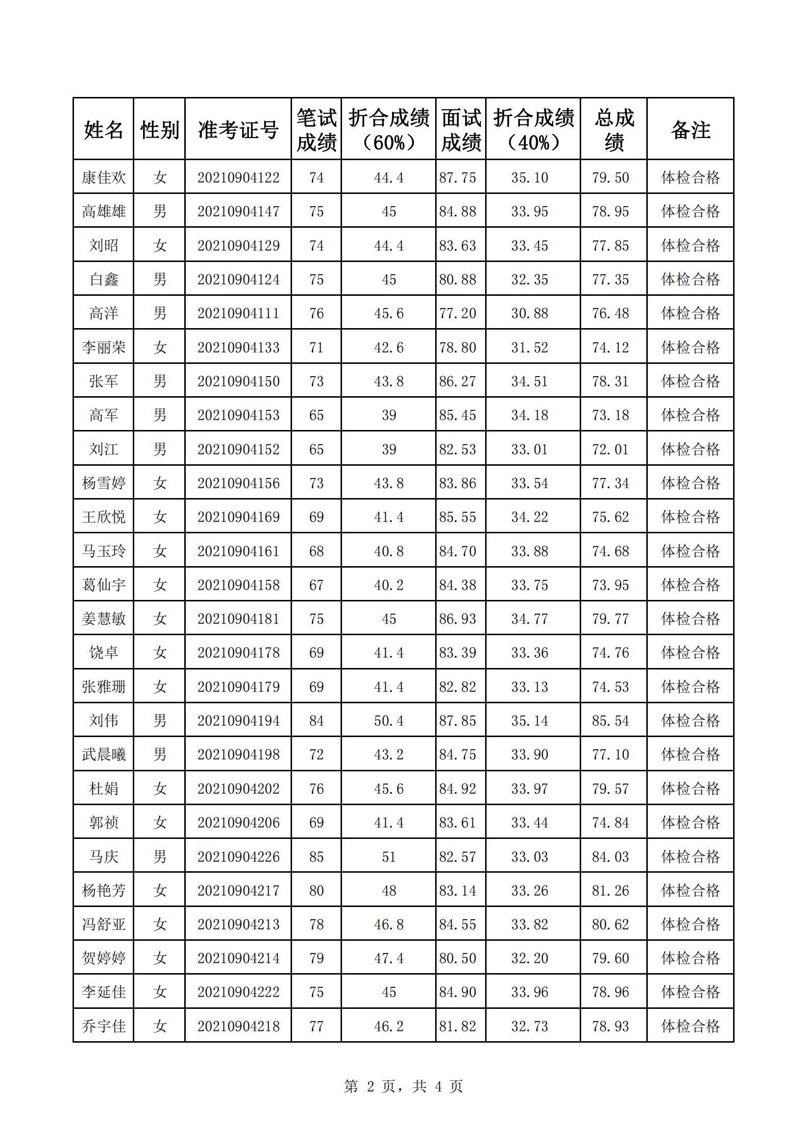 根据365上市公司官网2021年招聘教师的工作安排,通过个人申报、资格初审、笔试考核、资格复审、面试考核、体检等工作,现将拟聘用人员名单予以公示。