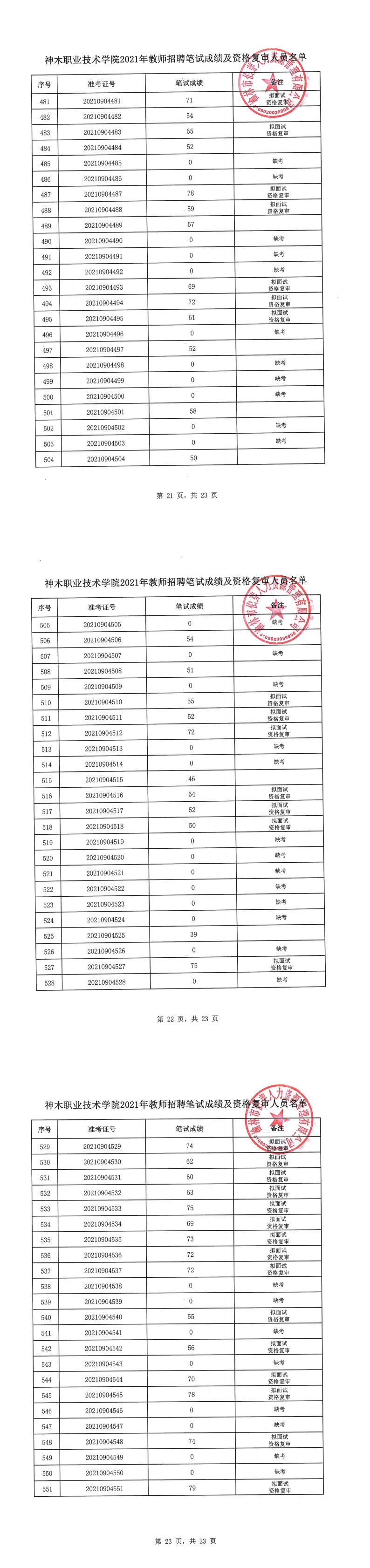 附件:2021年教师招聘笔试成绩及资格复审人员名单
