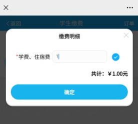 (1)【学生缴费】:进入缴费界面,显示所有需要缴纳的费用,学生可以通过选择,缴纳费用,选中需要缴费的选项,可以自定义金额。