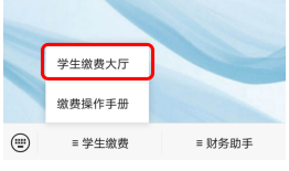 2、点击【学生缴费】-【学生缴费大厅】菜单,如下图所示: