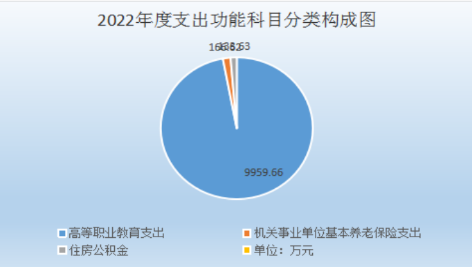 高等职业教育(2050305)9959.66万元,较上年7374.27增加2585.39万元,增加的原因是聘请劳务派遣人员93人,人员经费增加;上年度网络租赁费未在年初预算中列支,本年度在年初预算中列支网络租赁费189.7;学生人数较上年增加2300人,生均经费增加1648万元,招生质量提升奖励经费增加60万元。