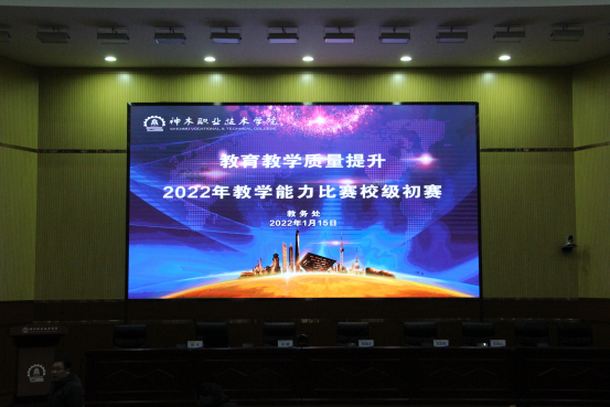 教务处于2022年1月15日晚上6点,在5号教辅楼1楼会议室,召开“教育教学质量提升—2022年教学能力比赛校级初赛交流”会,会议由教务处刘文伟处长主持,参会人员有“教学能力比赛校级初赛”全体评委以及参赛人员共40余人,其中李建法副校长、白韡主任、陈庆老师,均从不同方面分享有关教学能力大赛的心得以及建议。