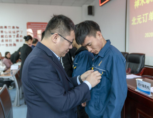 最后,刘文伟处长总结到,本次订单班的顺利开班,标志着我校与北元集团和的校企合作又步入了一个新阶段,取得了一个新成果。“校企合作,订单培养”是高职院校人才培养的重要模式,这是高职院校有效的人才培养模式,也是企业有效的人力资源开发模式。同时对此次开班仪式提出了几点要求:第一,珍惜机会,履行“北元准员工和神木职院学生”的双重身份,严格遵守企业和学校的各项规章制度;第二,加强系部与企业的沟通,积极探索柔性的人才培养和管理模式,在课程设置、双元制教材开发、共建师资培训基地、实习实训等方面要提出详细的实施方案;第三,严格管理,要关心爱护学生,及时沟通信息。