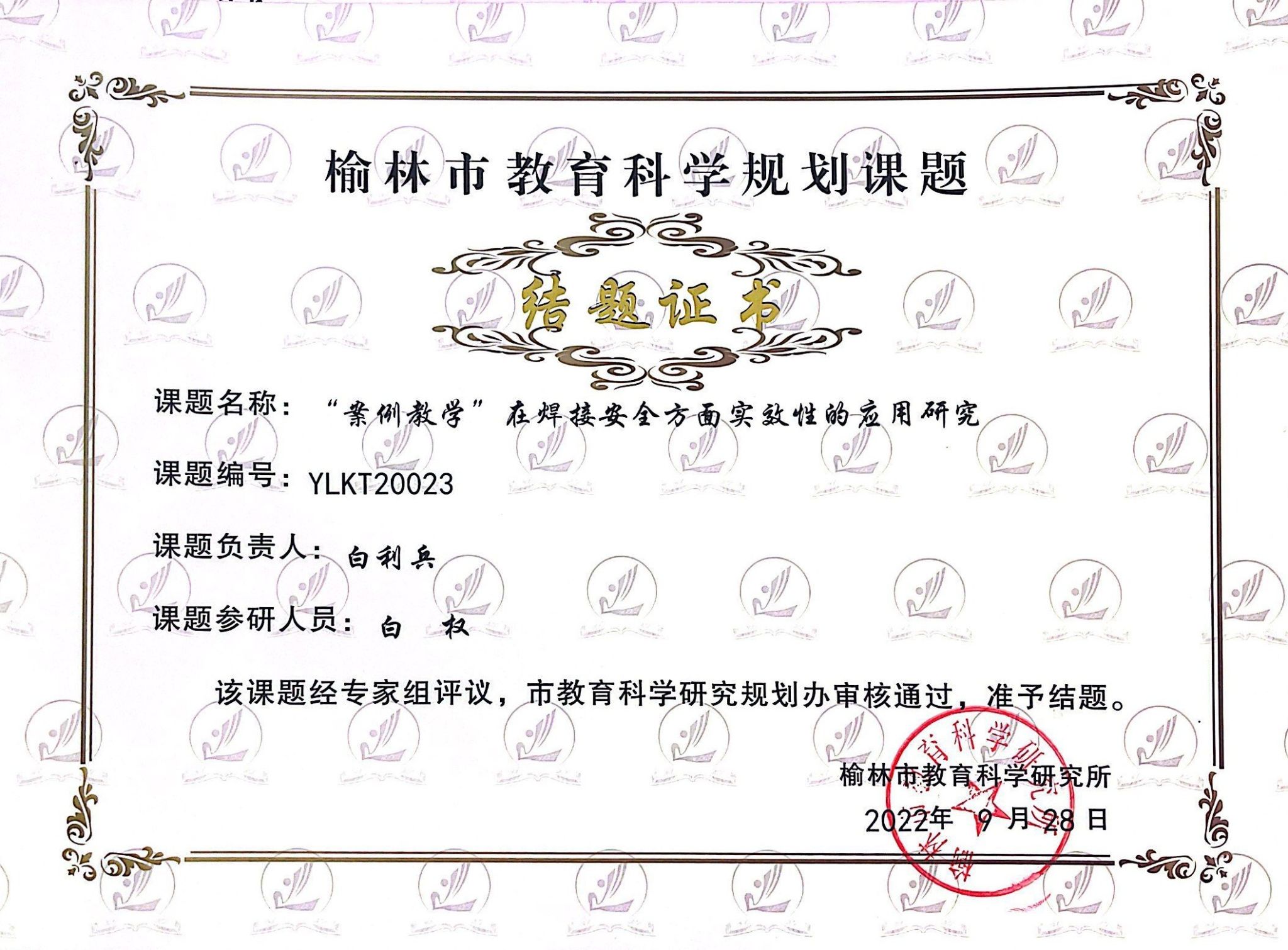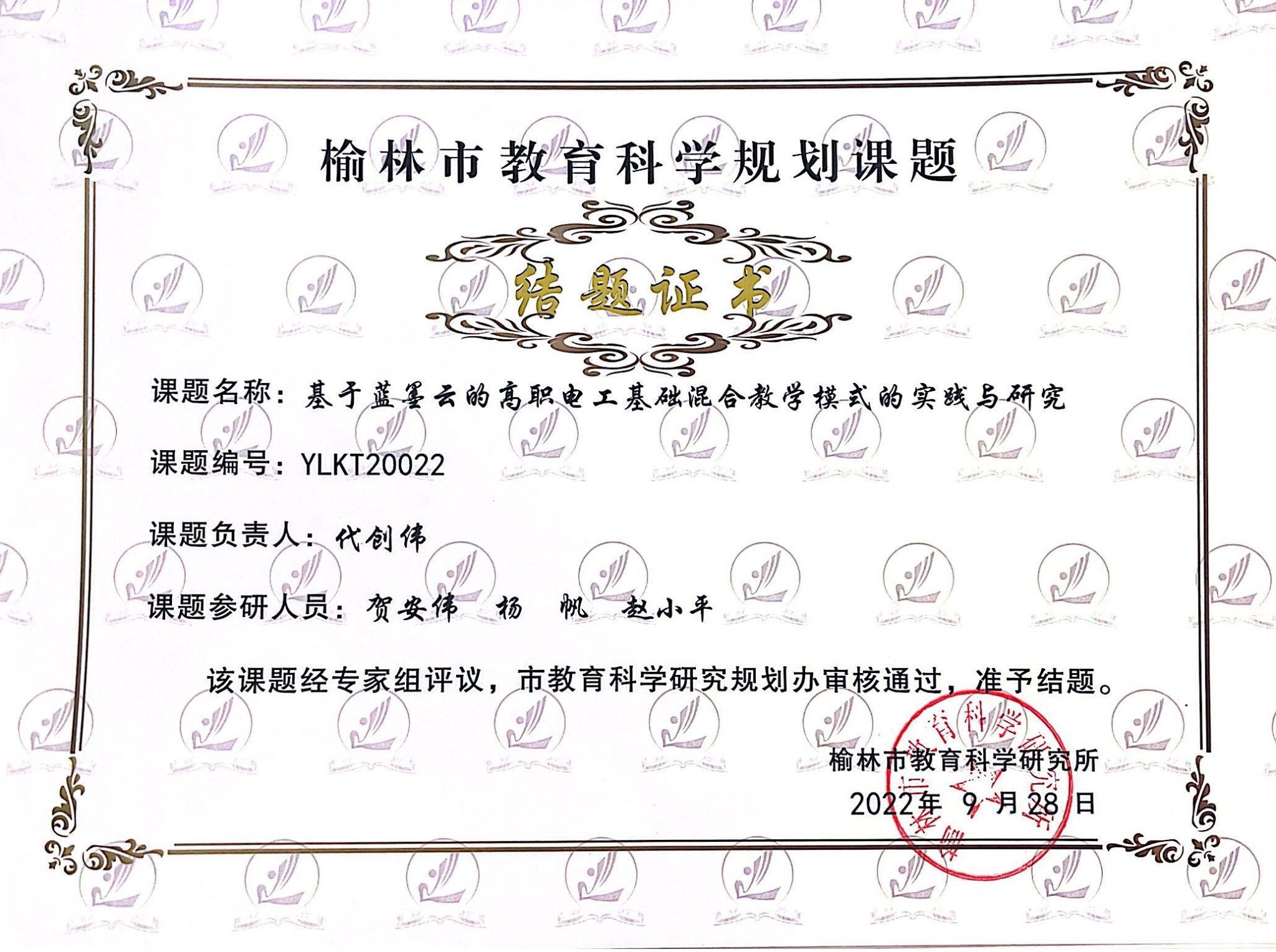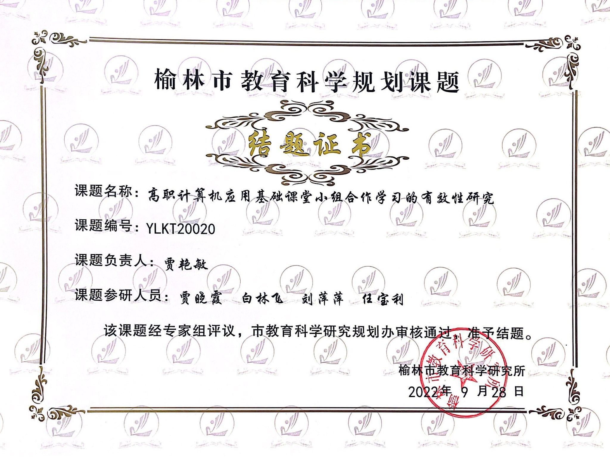 2022年榆林市教育科学规划课题结题已经结束,希望我校教师在今后的教学工作中,继续发扬刻苦钻研精神,立足学科核心素养,以研促学,以研促教,推动学校教育教学的高质量发展。