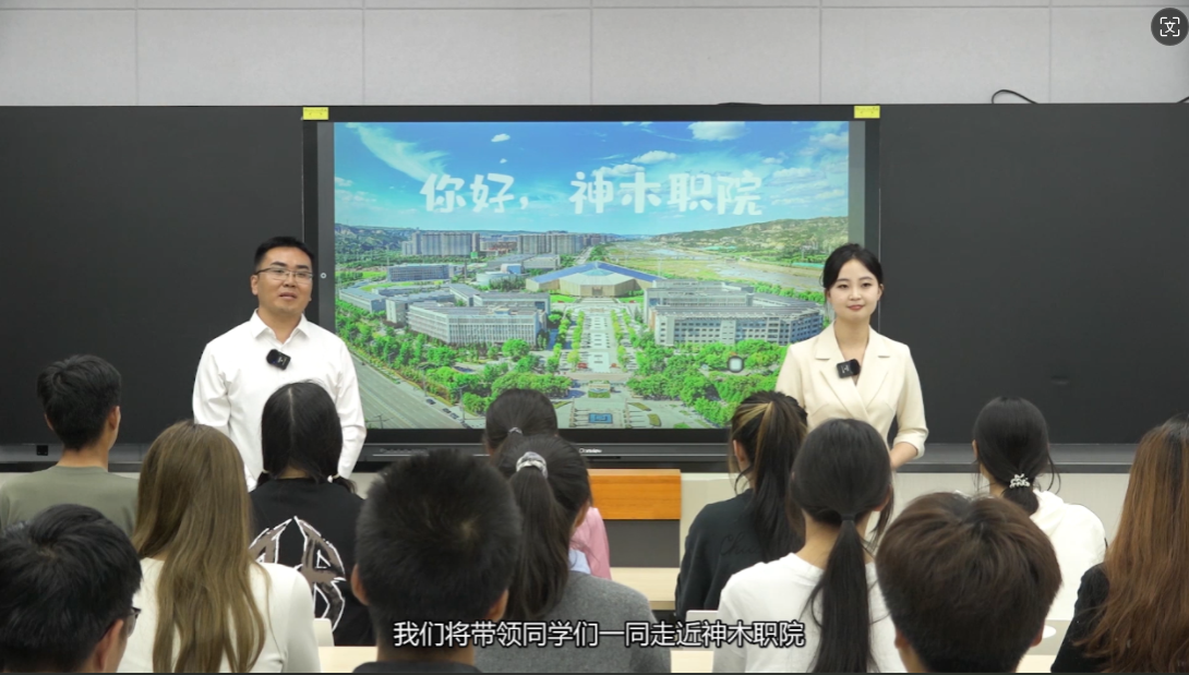 课堂分为三部分,第一部分“你好,神奇神木”。首先从经济、社会、自然、文化等方面展示了神奇神木,为新同学们描绘出了神木的神秘神往。第二部分 “你好,神木职院”是课堂的核心部分,由公共课教学部王慧老师和思政部杨思勤老师担任主持人,带领大家认识神木职院、了解神木职院、爱上神木职院。
