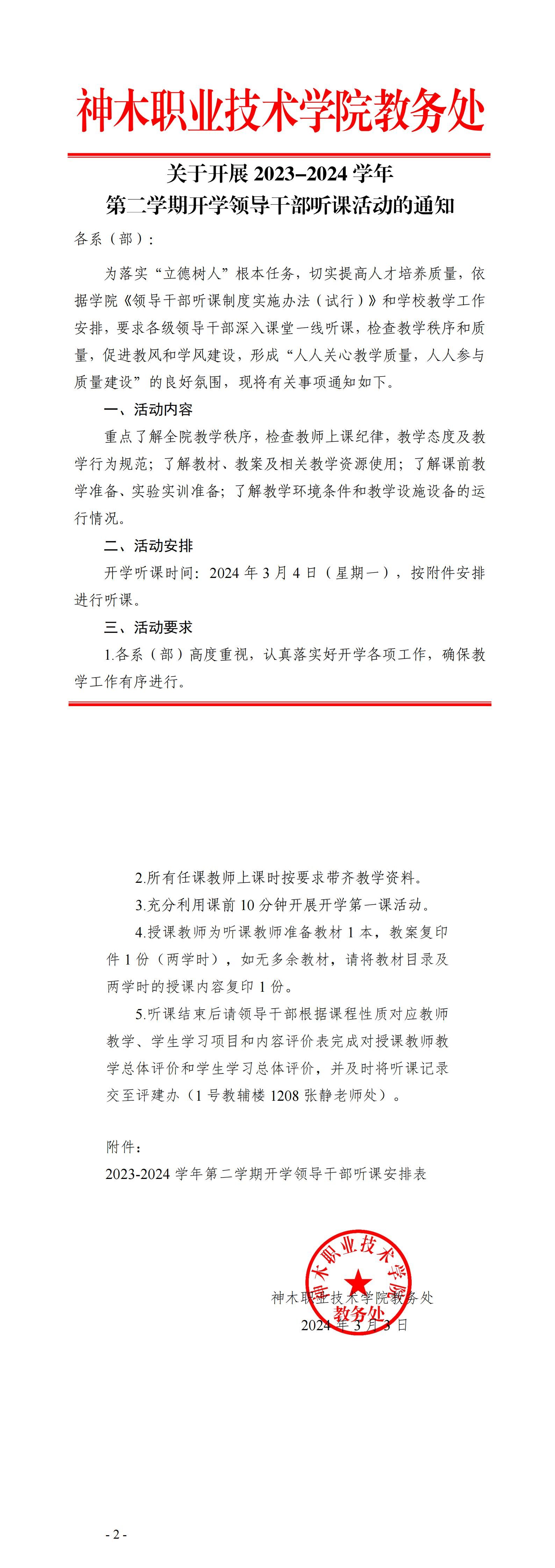 关于开展2023-2024学年第二学期开学领导干部听课活动的通知