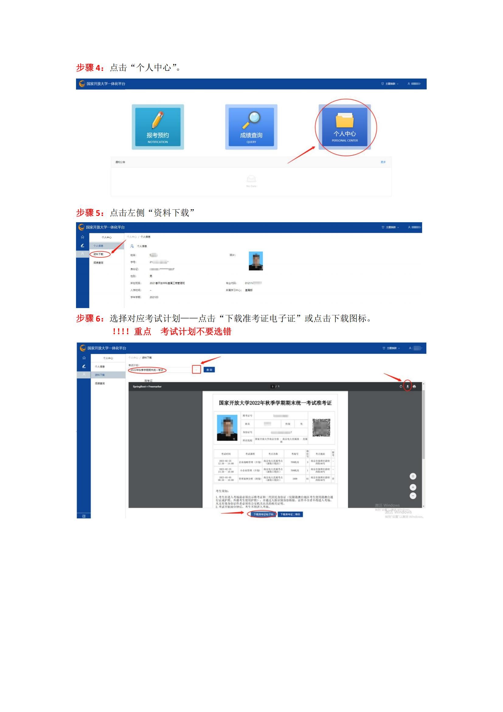 国家开放大学石油和化工学院考生下载准考证教程