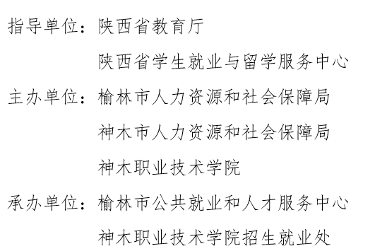 为了深入贯彻党的二十大精神,坚决落实党中央、国务院和省委省政府关于做好稳就业、保就业、促就业工作决策部署,按照陕西省教育厅《关于做好2024届全省普通高校毕业生就业创业工作的通知》的工作要求,进一步加强学校和用人单位的合作交流,更好的为用人单位和毕业生搭建供需双向选择平台,促进我校毕业生充分高质量就业,经我校商榆林市人社局,拟定于2024年4月1日举办2024年榆林市“职引未来”招聘会暨365上市公司官网2024届毕业生“春季促就业攻坚行动”双选会,会议具体事项如下: