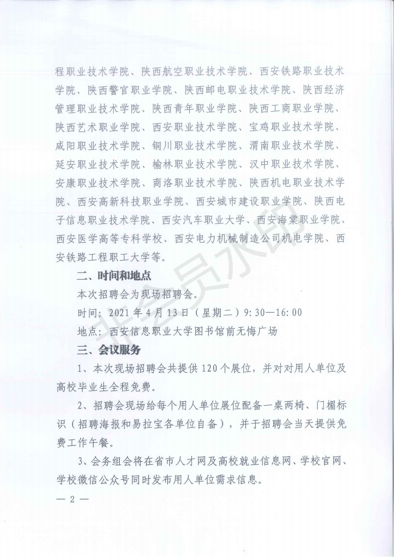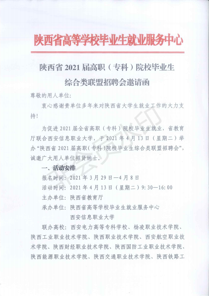 关于“陕西省2021届高职(专科)院校毕业生综合类联盟招聘会”的相关通知