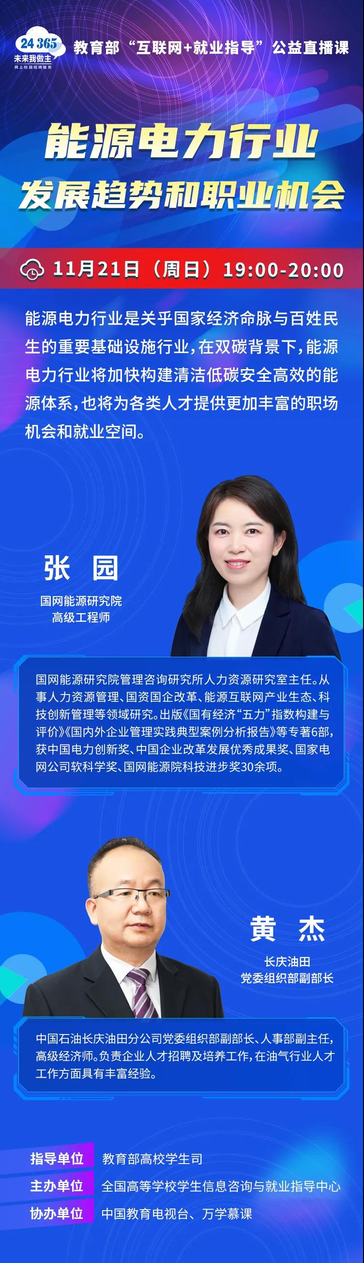 直播课来袭,11月21日课程主题:能源电力行业发展趋势和职业机会