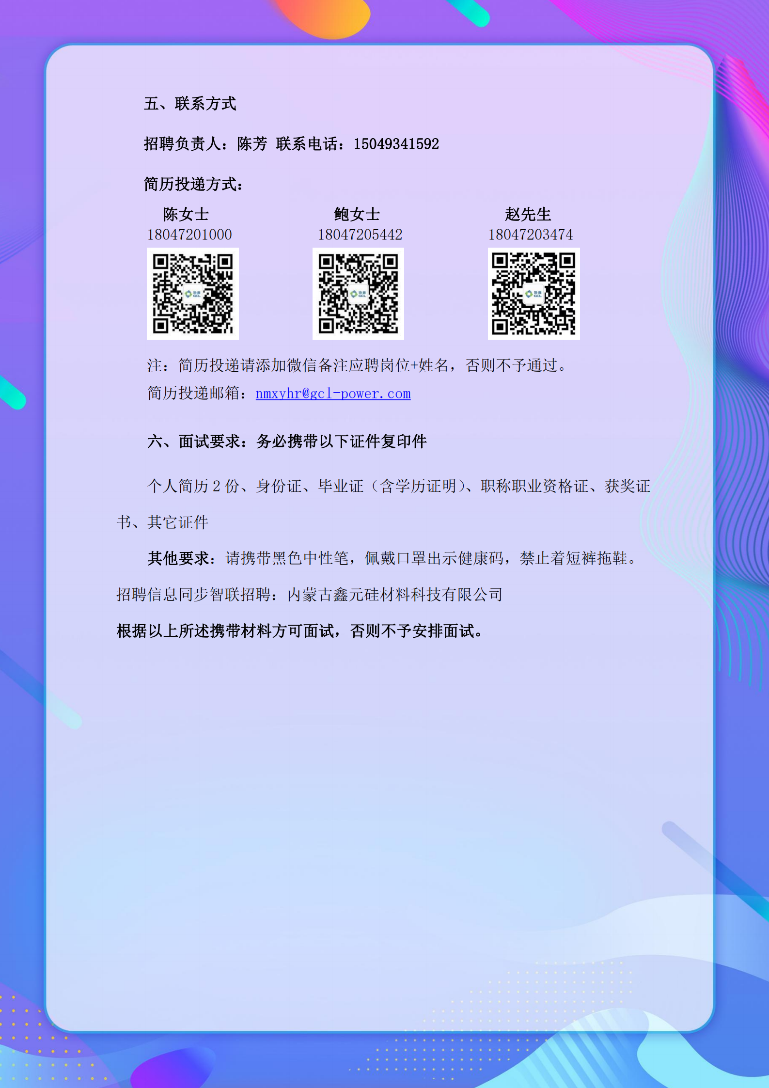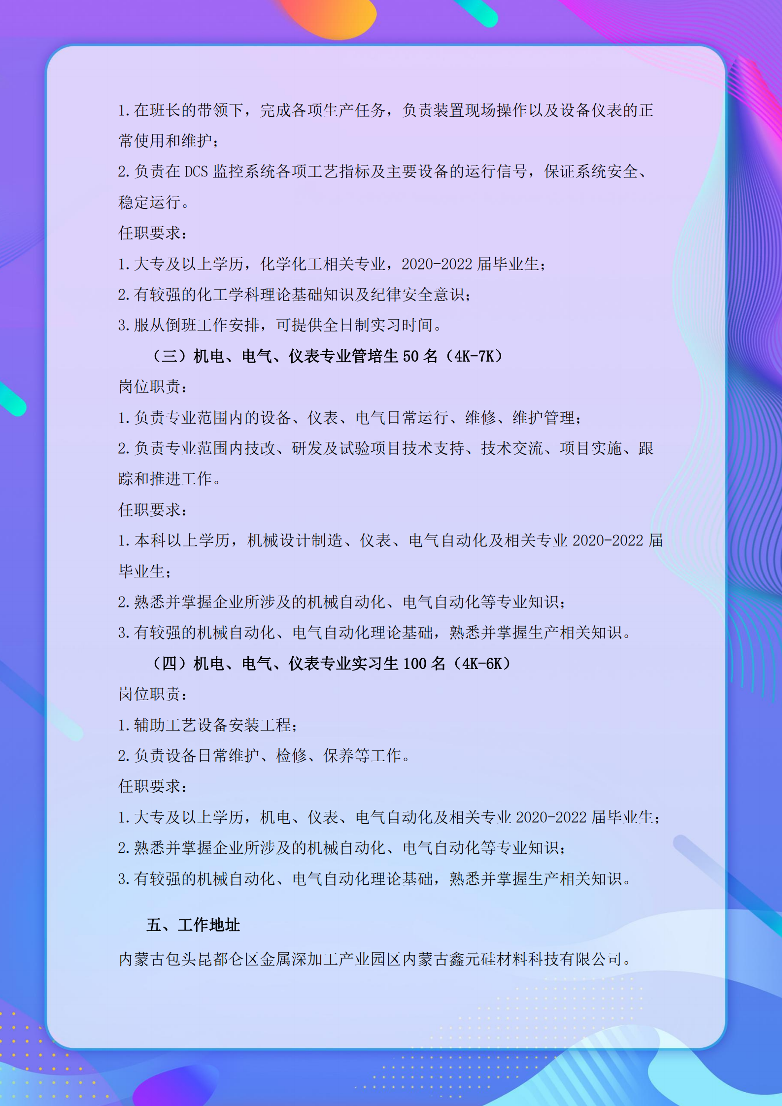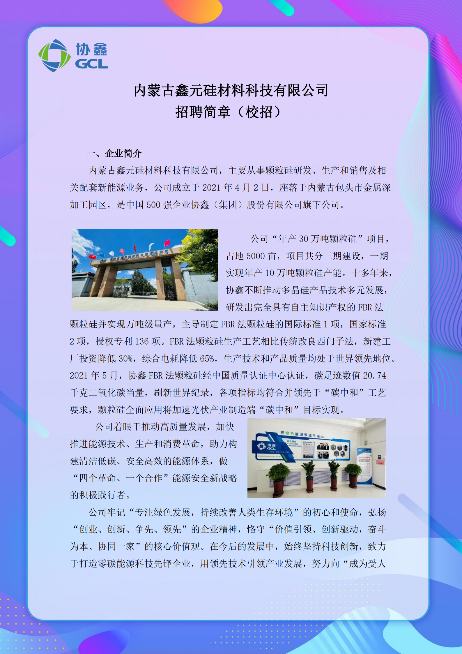内蒙古鑫元硅材料科技有限公司招聘信息