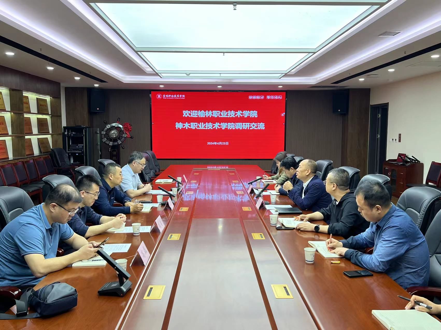 为做好人才队伍建设的整体规划,持续健全人才发展机制,4月21日至24日,我校人事处处长刘强与榆林职业技术学院人事处一行五人先后赴西安职业技术学院、宝鸡职业技术学院、陕西财经职业技术学院、汉中职业技术学院开展了人事工作调研。各校人事处负责人及相关科室同志参与了座谈会。会议就师资队伍建设、机构设置、学校绩效考核管理等方面工作进行了交流。