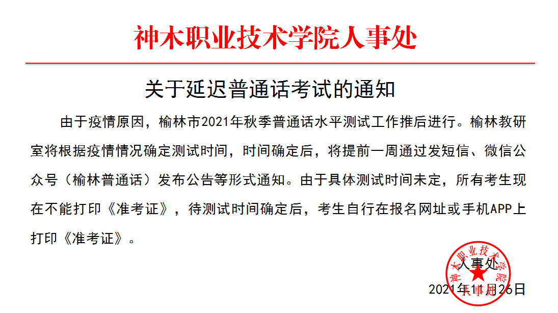 关于延迟普通话考试的通知
