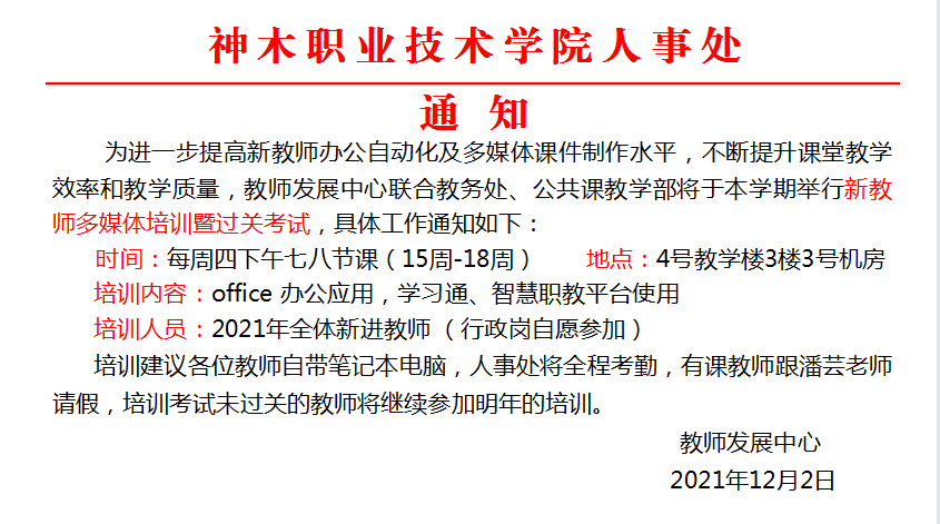 上一条:关于2021年新入职教师教育教学能力提升专题网络培训的通知 下一条:关于开展2021年职称评审工作的通知