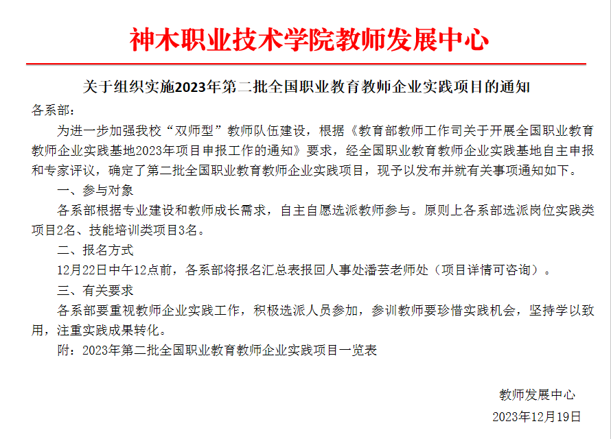 关于组织实施2023年第二批全国职业教育教师企业实践项目的通知