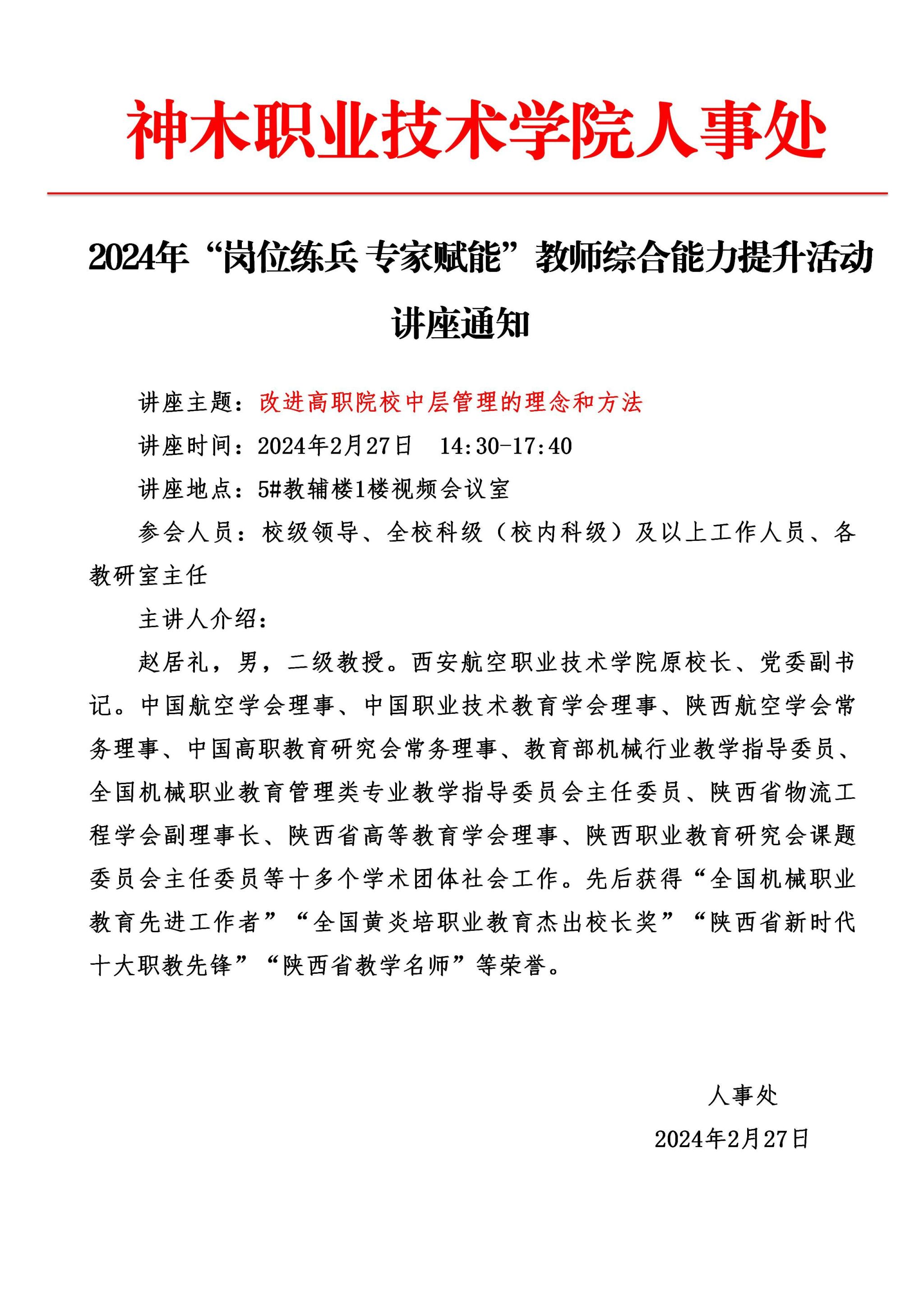 2024年“岗位练兵 专家赋能”教师综合能力提升活动讲座通知
