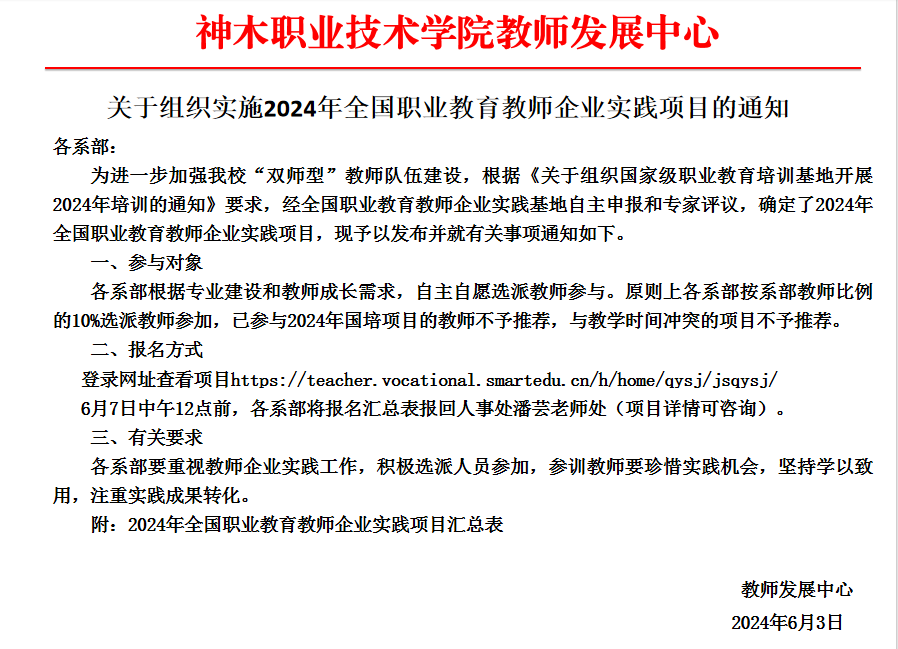 关于组织实施2024年全国职业教育教师企业实践项目的通知