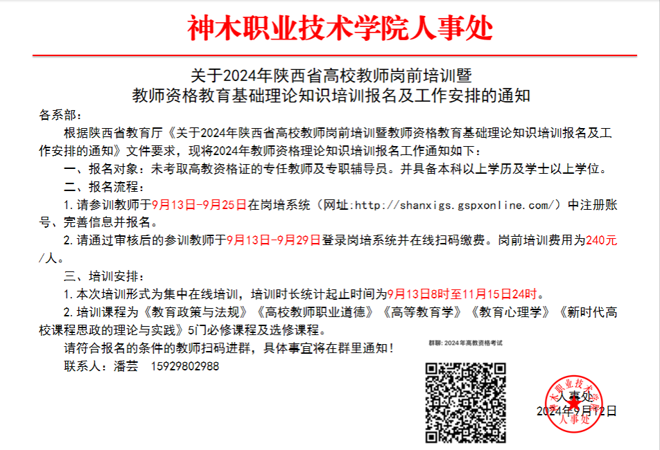 关于2024年陕西省高校教师岗前培训暨教师资格教育基础理论知识培训报名及工作安排的通知