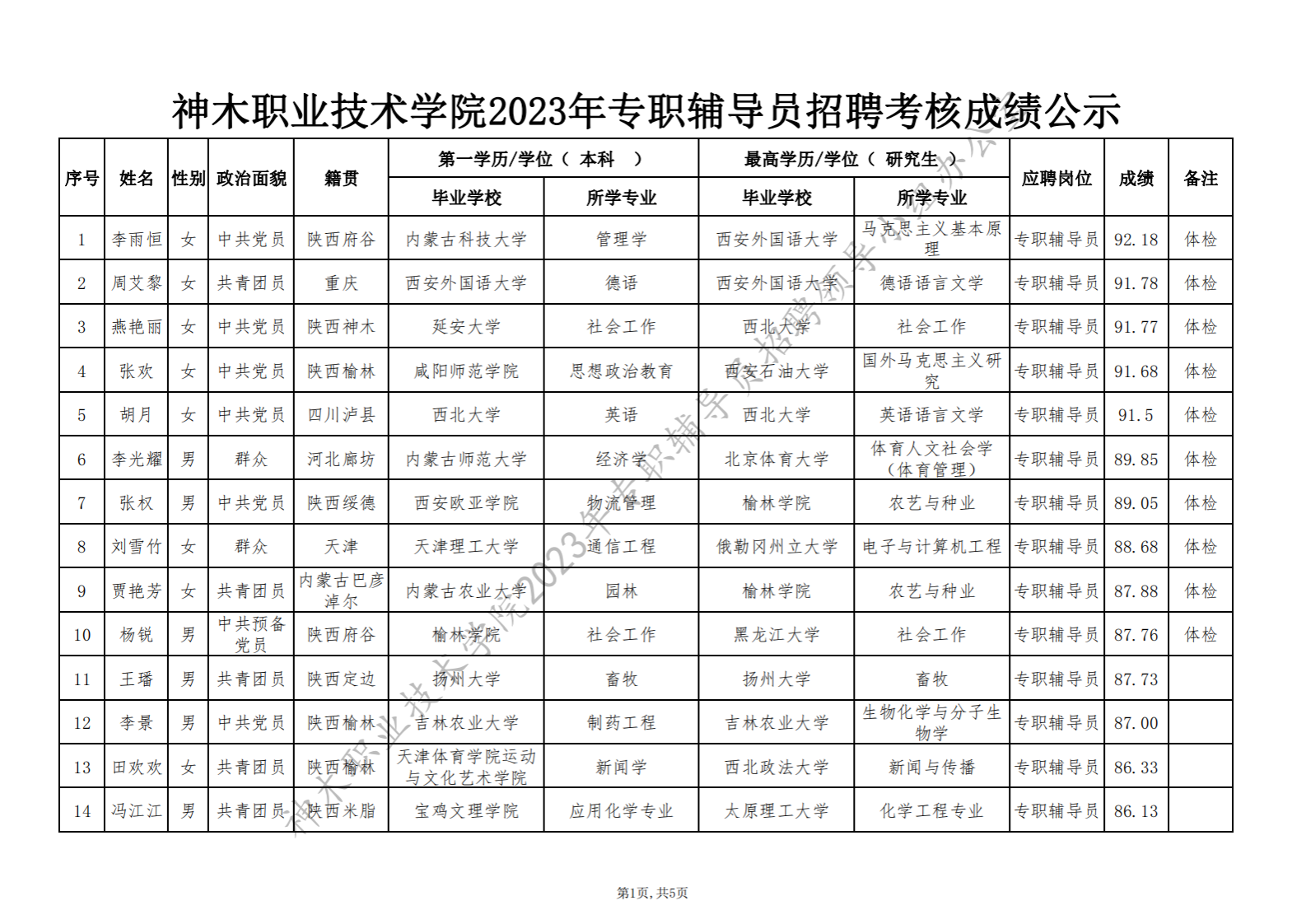 根据365上市公司官网2023年专职辅导员招聘工作安排,通过个人报名、资格初审、资格复审、面试考核等工作,现将考生成绩从高分到低分排序,并根据岗位聘用计划1:1比例确定进入体检人员名单,现予以公示。