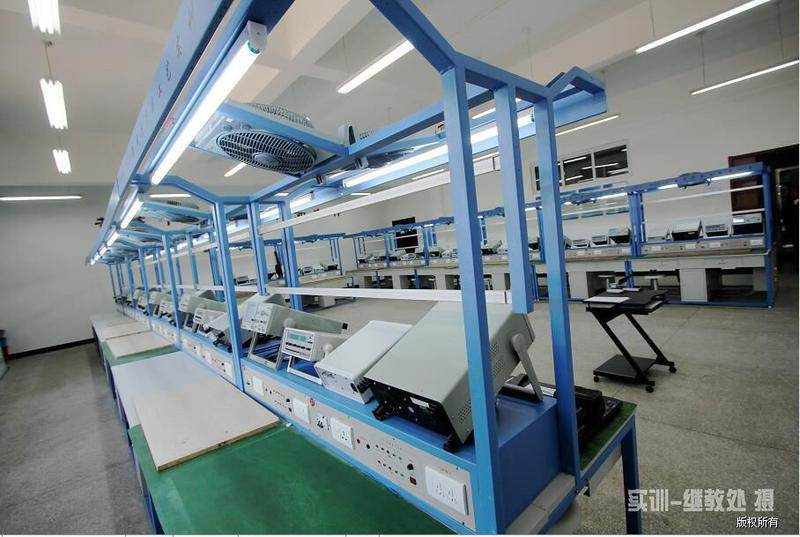 本实训室是专门针对电子线路安装与调试实训课程所建立的实训场地,配备有全新的电子产品制作与设计工位和先进的双踪示波器及信号发生器,可以完全满足对中、低端模拟电子系统和数字电子系统进行设计、制作和调试的要求,开设的教学项目有:电子元件的认识与使用、万用表的使用、信号发生器与示波器、直流稳压电源的设计及制作、基于555定时器的秒信号发生电路、OTL功率放大电路等。
