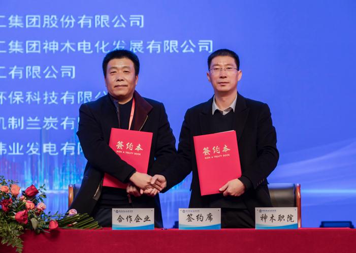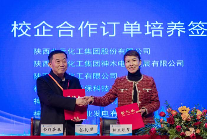 学院领导与陕西北元化工集团股份有限公司、陕西煤业化工集团神木电化发展有限公司、陕西精益化工有限公司等6家企业分别签订校企合作与订单班培养协议。