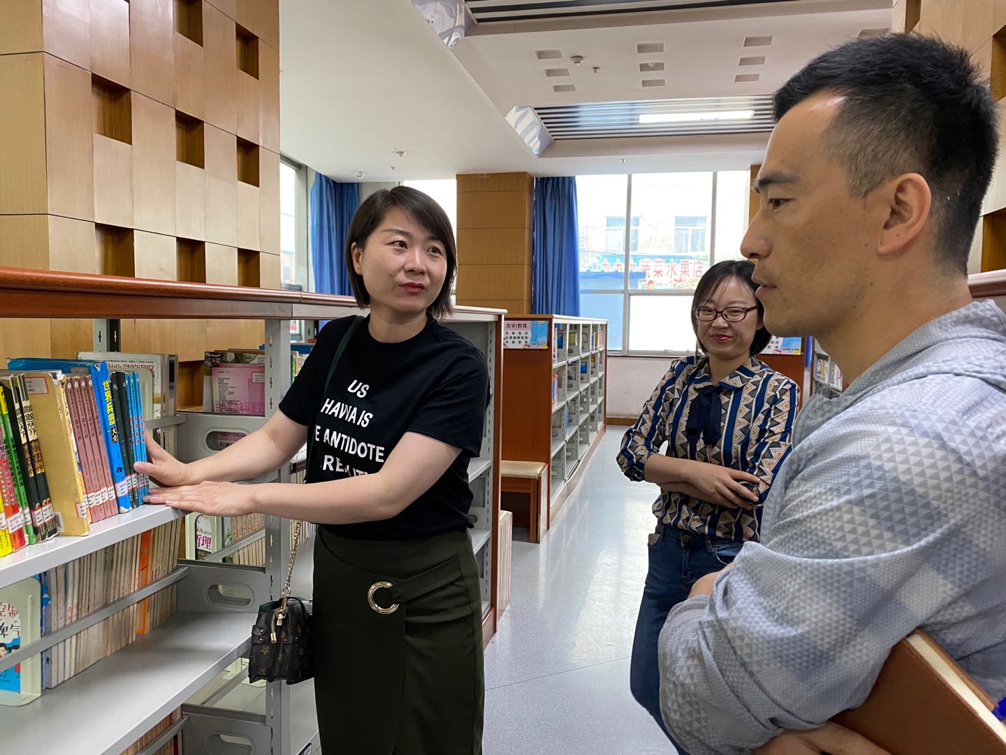 在参观过程中訾主任和王主任详细介绍了功能分区的建设管理情况、图书馆的日常运行管理情况和分享了图书馆初建时遇到的问题和宝贵经验。