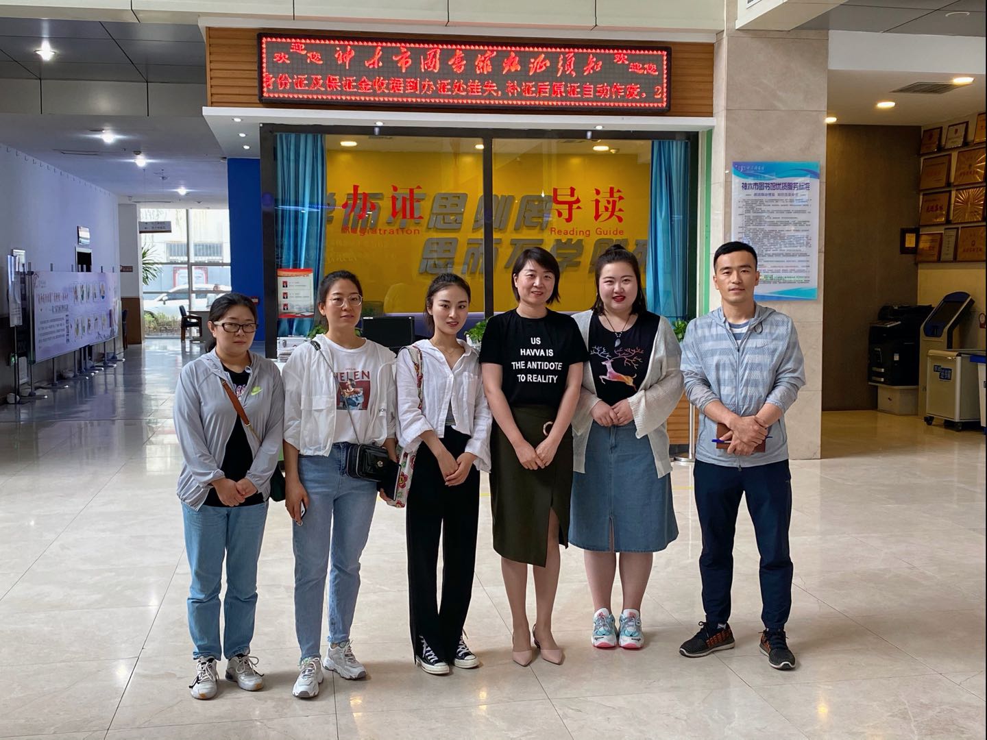 2020年6月11日上午,我馆四名馆员魏慧、王歌培、王灏帆、邱娜在田东昌老师的带领下到神木市图书馆参观学习。