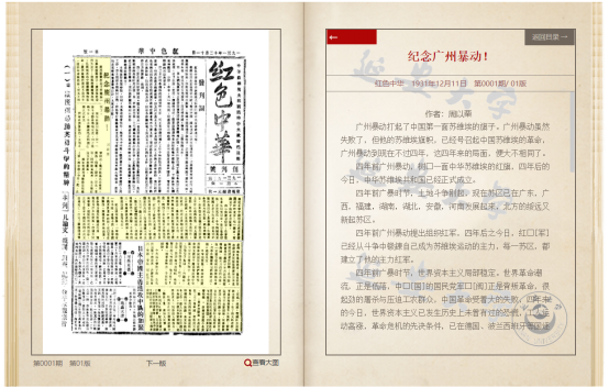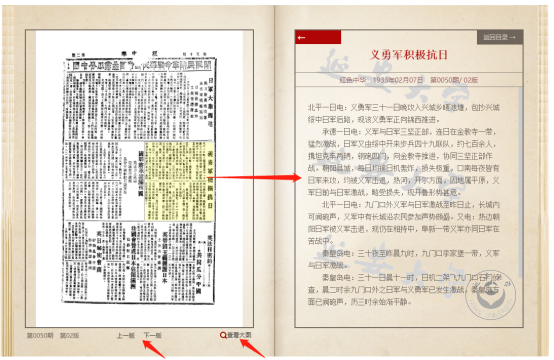 5. 点击左侧报纸原图中的热点,可右侧阅读对应的报纸全文。