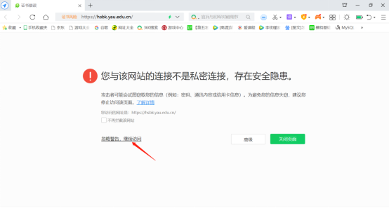 2. 输入网址:https://hsbk.yau.edu.cn:8443/red