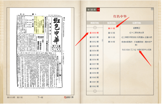 7. 输入所要查询的期次,可选择“期”、“版”、“篇目”,阅读报纸内容。