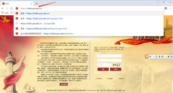 1 在浏览器地址栏输入:https://hsbk.yau.edu.cn:8443/red