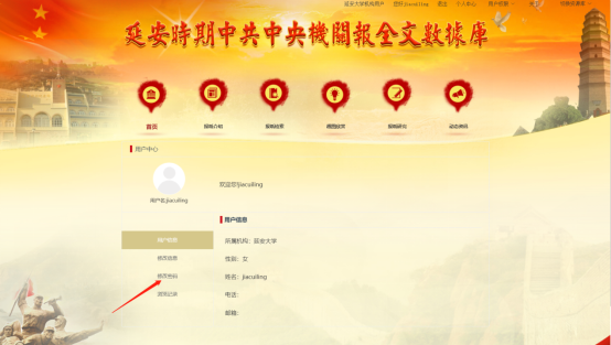 2. 点击“个人中心”,可进行用户信息及密码修改等