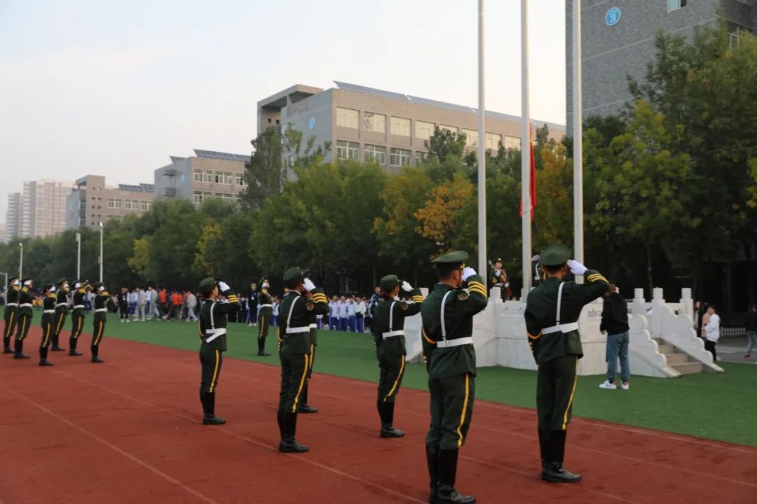 第一项,升国旗奏国歌,伴随着振奋人心的中华人民共和国国歌,鲜红的国旗在学校的升旗台上缓缓升起,全体师生面对国旗行注目礼。